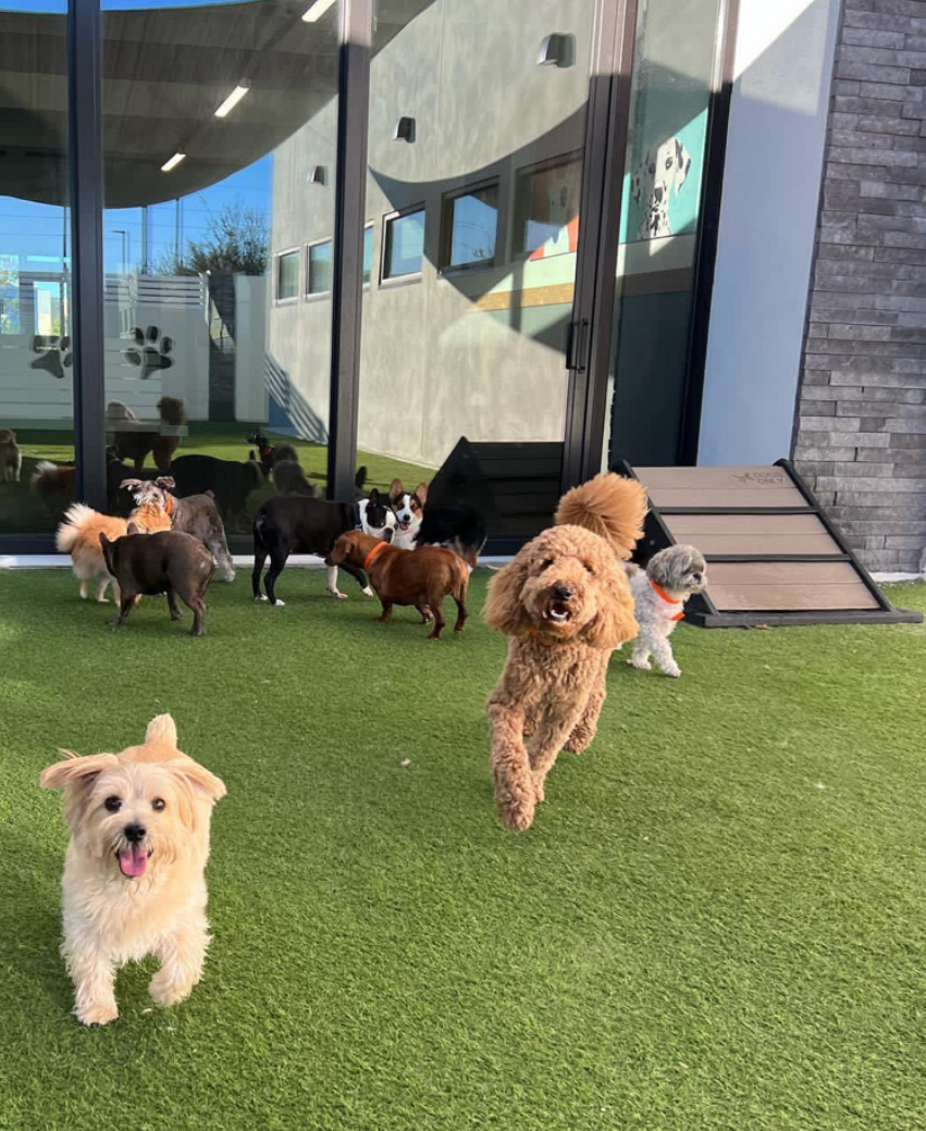 The hotel offers a state-of-the-art facility with both indoor and outdoor play areas, providing ample space for dogs to exercise and socialize.