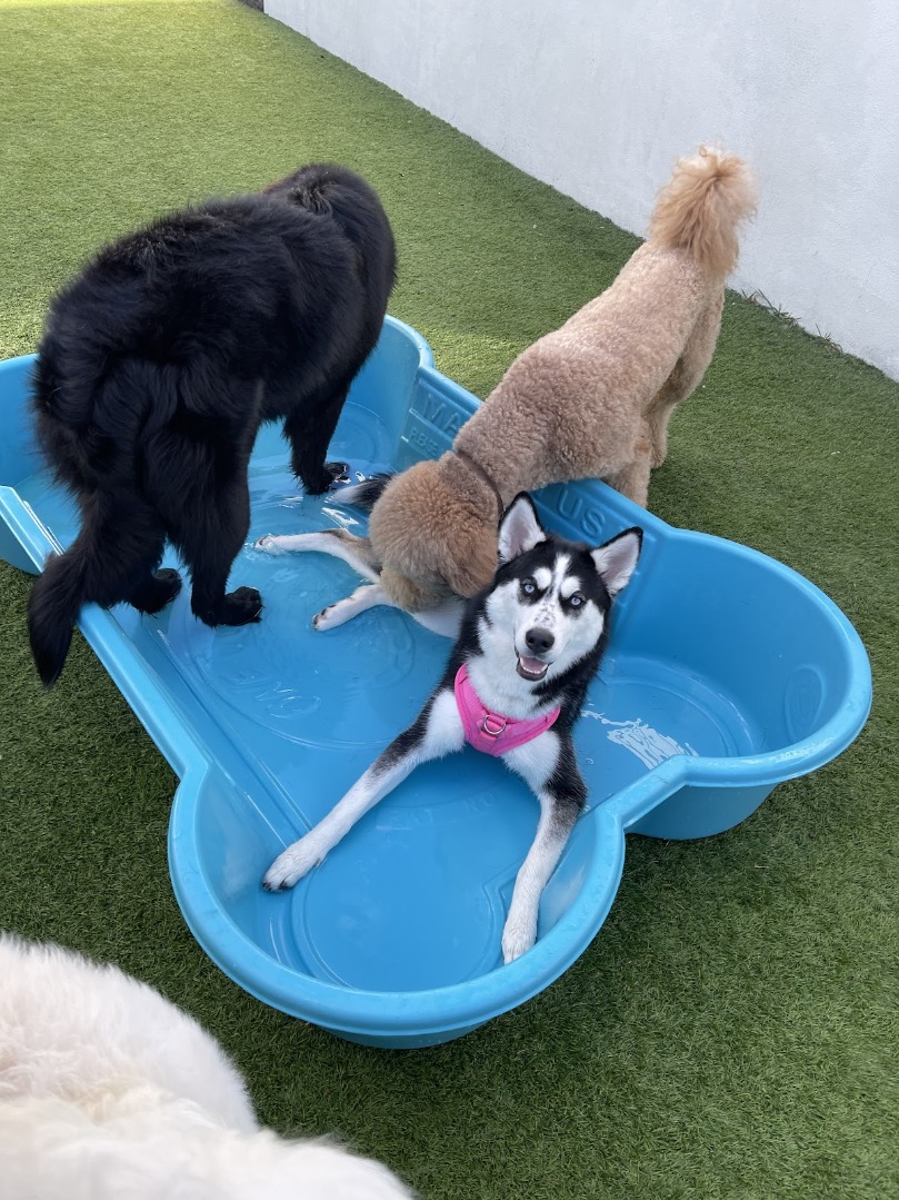 Services include boarding, daycare, grooming, and training. Overnight boarders have a choice of four kennel sizes, and stays include two playgroup sessions.