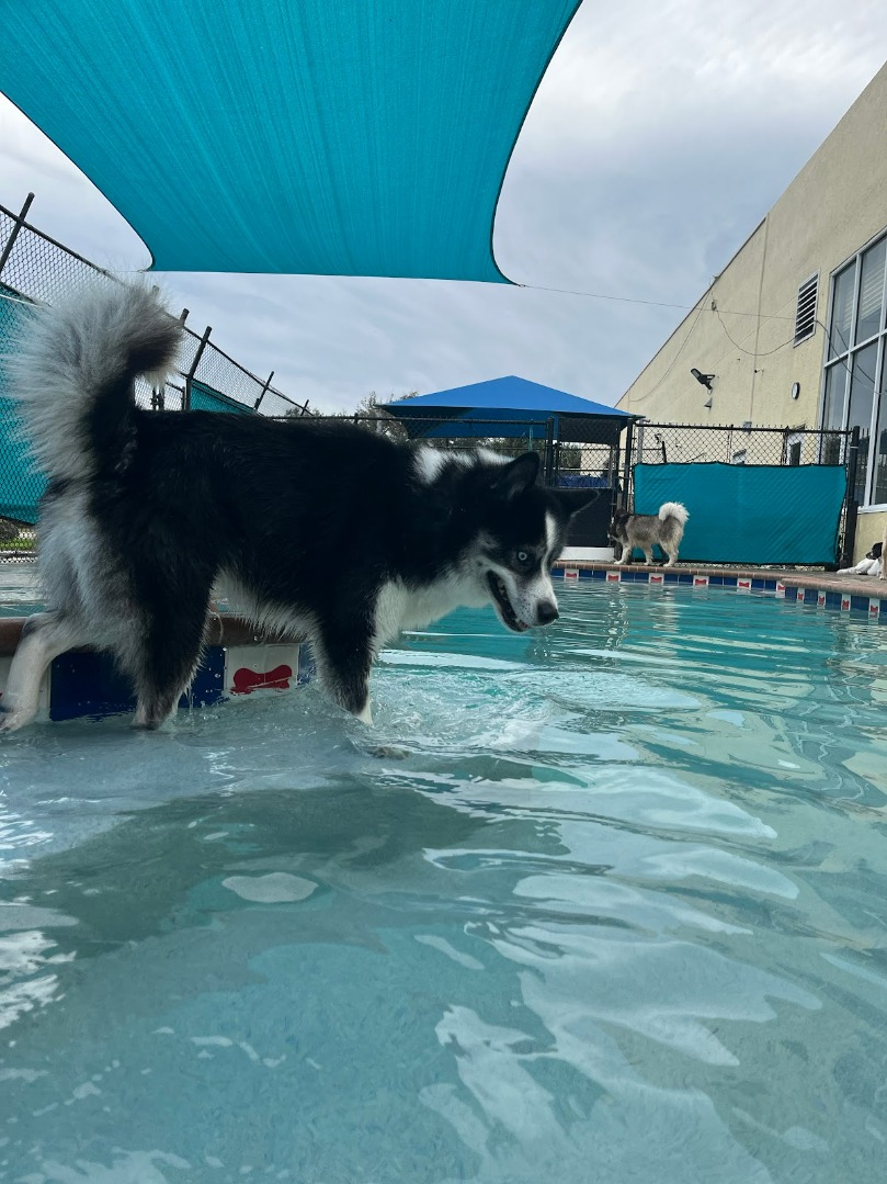 Pets must be vaccinated and a temperament assessment is required before boarding. The facility offers air-conditioned suites, a swimming pool, and live webcams.