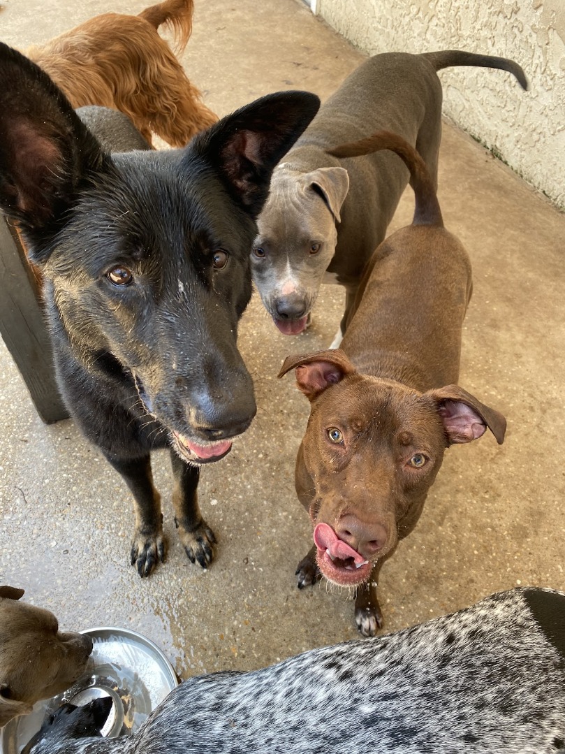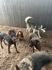 The facility offers spacious indoor and outdoor play areas, including climate-controlled accommodations and secure play spaces for dogs to socialize and exercise.